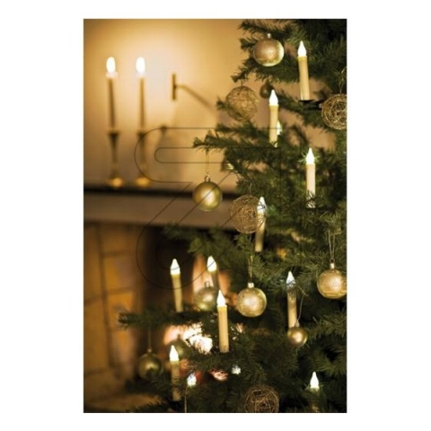 Kabellose LED Kerzen weiß im Tropfdesign, Höhe 14 cm und 10 batteriebetriebene Einzelkerzen mit weißen LEDs zum belíebigen Platzieren am Baum, Leuchtdauer mit einem Satz Batterien ca. 120 Stunden, mit Fernbedienung, Reichweite ca. 15 m und 10 Mignon-Batterien
