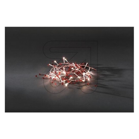 LED Perlenkette innen, hohe Lebensdauer und geringer Stromverbrauch von 0,06W/LED, mit roten Perlen und Trafo 24V, Leitung und Fassung transparent Abstand der Lichter 6,5 cm, beleuchtete Länge 2 m, Gesamtlänge 7 m