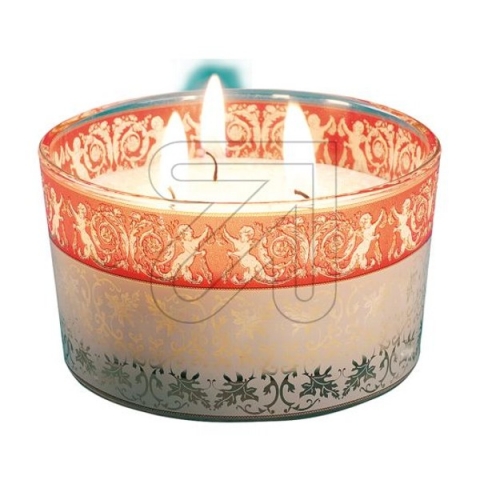 Glas Windlicht Venedig mit Wachskerze 3 flammig, Glas mit Engelmotiven und Verzierungen